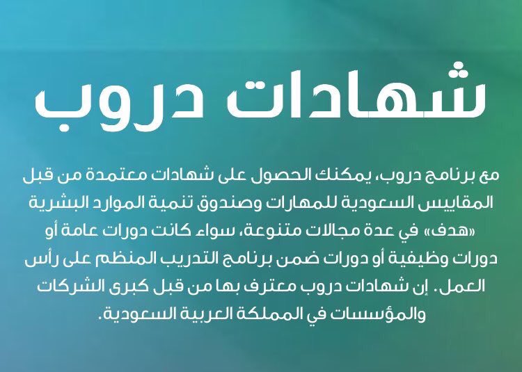 دروب منصة وطني ة للتدريب الإلكتروني وإحدى مبادرات صندوق تنمية الموارد البشرية هدف التي تسعى إلى تمكين القوى العاملة وتطوير قدراتهم ومهاراتهم. في موقع فرصة سوف تجد مجموعة دورات مجانية بمجالات متنوعة ومختلفة ومقدمة من منصات ومواقع موثوقة مع إمكانية الحصول على شهادة معتمدة مجانية أو مقابل مبلغ قليل تتنوع المجالات حتى تلبي احتياجاتك وحتى. سجل في الدورات التدريبية المجانية لدينا اون لاين لتطوير مهاراتك مع شهادات معتمدة. يحق ق برنامج دروب ذلك من خلال تقديم مقر رات إلكترونية تهدف إلى تطوير المتدربين في عدد من المهارات.