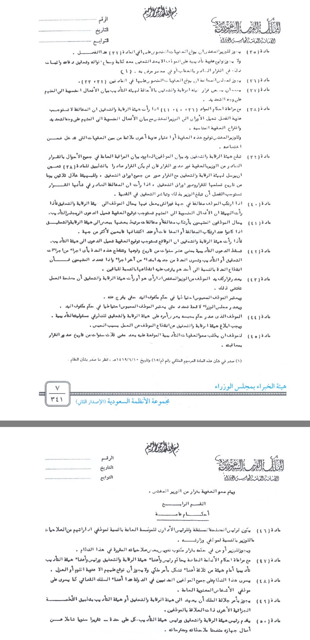 The page you are looking for does not exist home page. وبعد الاطلاع على نظام تأديب الموظفين الصادر بالمرسوم الملكي رقم م ٧ وتاريخ. الأنظمة السعودية للاطلاع على الأنظمة السعودية مع إمكانية البحث حسب التصنيفات والترتيب الأبجدي. هيئة الر قابة والتحقيق الباب الأول.