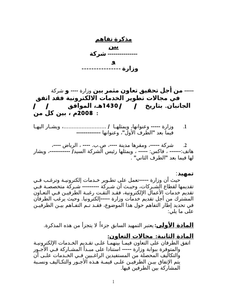 نموذج مذكرة تفاهم بين شركتين او شركة خاصة ومؤسسة عامة مذكرة التفاهم هي وثيقة رسمية تتضمن اتفاقا بين طرفين أو عدة أطراف وهي تعد إيذانا ببدء العمل بين أطراف الاتفاق أكثر منها التزاما. كتاب صديق المحامي نماذج الدعاوى والأعمال الإدارية. منذ سنة و6 أشهر. صيغة عقد اتفاق بين شخصين عقد شراكة بين شخصين عقد اتفاق بين طرفين عقد شراكة عقد اتفاق بين طرفين pdf عقد التزام بين طرفين نموذج اتفاقية تعاون بين شركتين قد يبحث الكثير من الأشخاص عن الصيغ الصحيحة لهذه العقود لضمان.