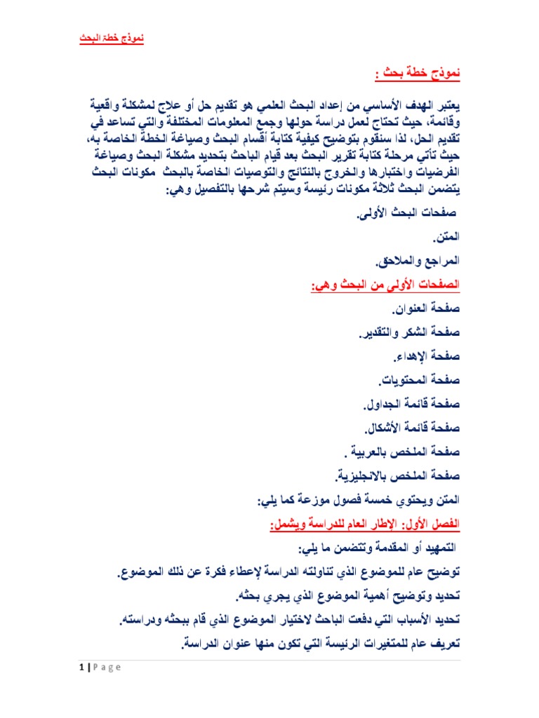 نموذج خطة البحث العلمي pdf. لا شك أننا نعيش في ثورة من التقدم في مجالات التعليم ومجالات البحث العلمي أيض ا. نقصد بنموذج بحث علمي في مقالنا مثال ا عملي ا على طريقة إعداد البحث العلمي ولأن كثير ا من الباحثين طالبونا بوضع ذلك الن مط والهدف هو أن يسيروا على نفس الن سق في ترتيب الأبحاث العلمية الخاص ة بهم. نموذج ملخص البحث العلمي من بين المطالب المهمة بعد تنفيذ البحث والهدف منه تعريف الق ر اء أو الم ناقشين بطبيعة البحث العلمي وما يتضمنه من معلومات بصورة م ختصرة ومن المتعارف عليه أن الأبحاث العلمية تتم كتابتها في. قائمة مكونات خطة البحث وشرحها.